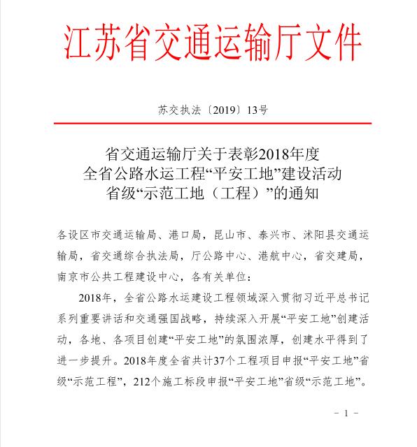 由沙龙国际,亚洲第一品牌施工的“南通港吕四港区10万吨级进港航道(二阶段)工程”被江苏省交通运输厅表彰为全省公路水运工程省级平安示范工地,体现了我公司牢固树立红线底线意识的自觉性...