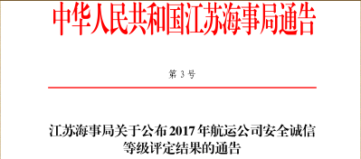 近日,在江苏海事局组织开展的2017年辖区航运公司安全诚信等级评定工作中,中港建设集团在129家航运公司中脱颖而出,被授予“江苏海事局安全诚信等级A级公司”荣誉称号。...